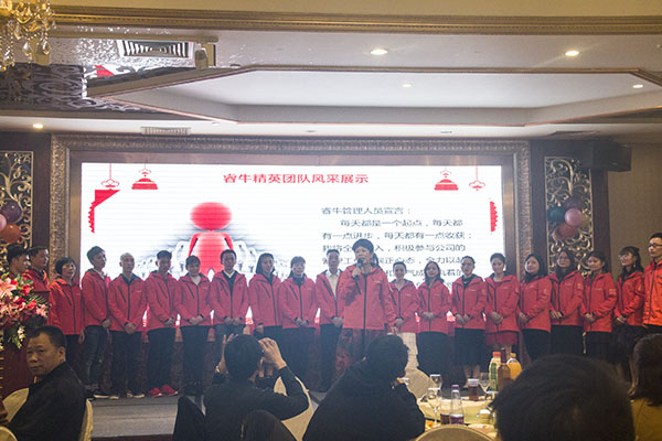 年會(huì)正式開始,睿??偨?jīng)理華姐上臺(tái)發(fā)表激情演講,總結(jié)2018年工作得失,市場(chǎng)發(fā)展前景,鄭地有聲地向大家描繪了睿牛制衣2019的新思路,新行動(dòng),“乘夢(mèng)飛翔,再創(chuàng)2019輝煌”。