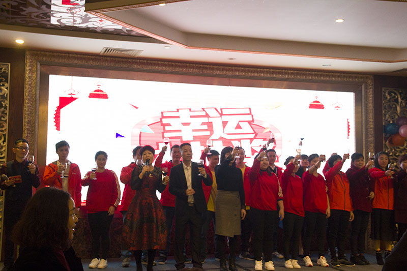 睿牛制衣有限公司總經(jīng)理華姐攜管理人員向全場(chǎng)嘉賓敬酒,隨著激動(dòng)人心的抽獎(jiǎng)及歌舞助興,再次將年會(huì)的氣氛推向了高潮!