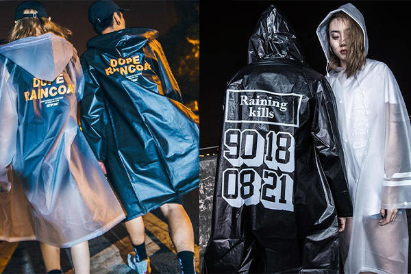 這是滿常見的一款,但同時也是最具風(fēng)格性的。在普通的穿搭,只要套上透明雨衣式的沖鋒衣,都可以化腐朽為神奇!利用內(nèi)搭上衣來避免撞衣的窘境,如圖左整套式的透明搭配,以頭跟腳的黑色配件來強(qiáng)化對比;圖右則是在亮橘色的衛(wèi)衣外,罩上透明黑邊的沖鋒衣,點(diǎn)亮了原本較單調(diào)的穿搭;圖中的下身選擇簡單的五分短褲,加以凸顯上半身的半透明沖鋒衣之特色。