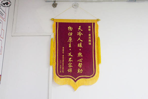 2、贈(zèng)送廣州南站“物歸原主義不容辭,天冷人暖熱心幫助”錦旗一面;