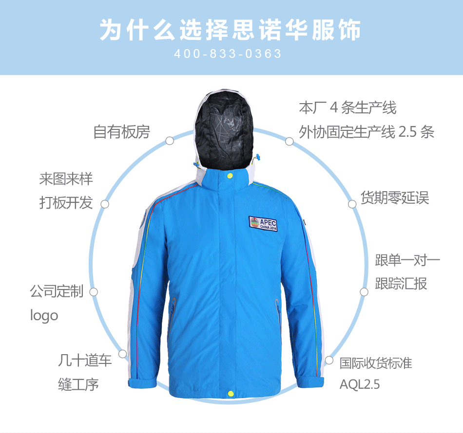 可脫卸沖鋒衣定制 擁有專業(yè)生產(chǎn)設備,產(chǎn)品出貨效率快