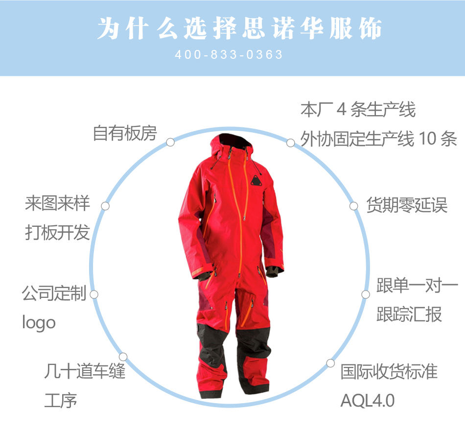 思諾華服飾—滑雪服生產(chǎn)廠家戶外連體滑雪服定制